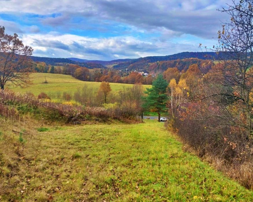 Teren o stromym ukształtowaniu, dzięki czemu z działki rozpościera się panoramiczny widok na okoliczne wzgórza i dolinę Hoczewki.